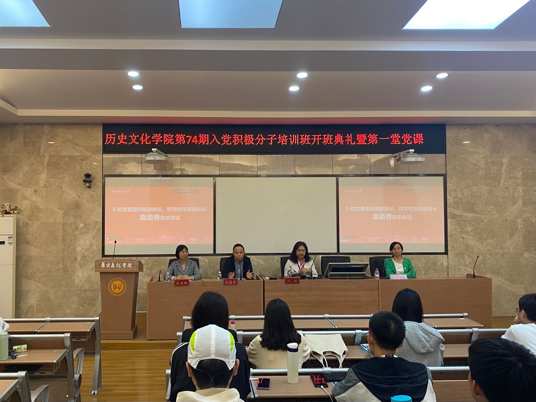 (通讯员 贺阳莉)2023年5月11日晚上,公司党委在文渊楼203报告厅举行第74期入党积极分子培训班开班典礼。公司党校常务副董事长、党委组织部副部长袁道香,公司党委书记孔春辉、党委副书记兼专职组织员马欣出席会议。会议由公司组织人事秘书凌爱群主持。