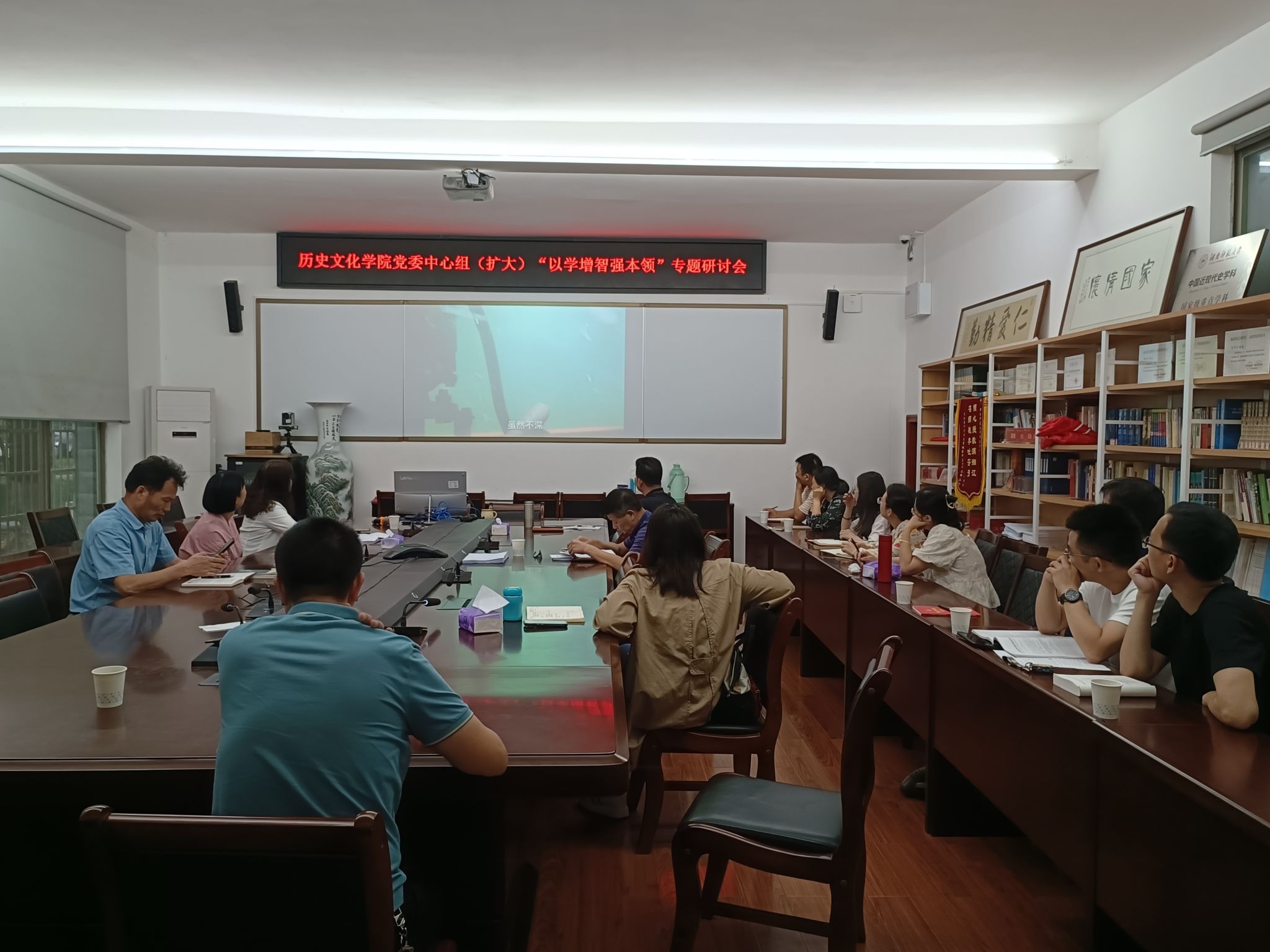 会上,全体成员观看了《时代楷模万步炎》党员教育片。