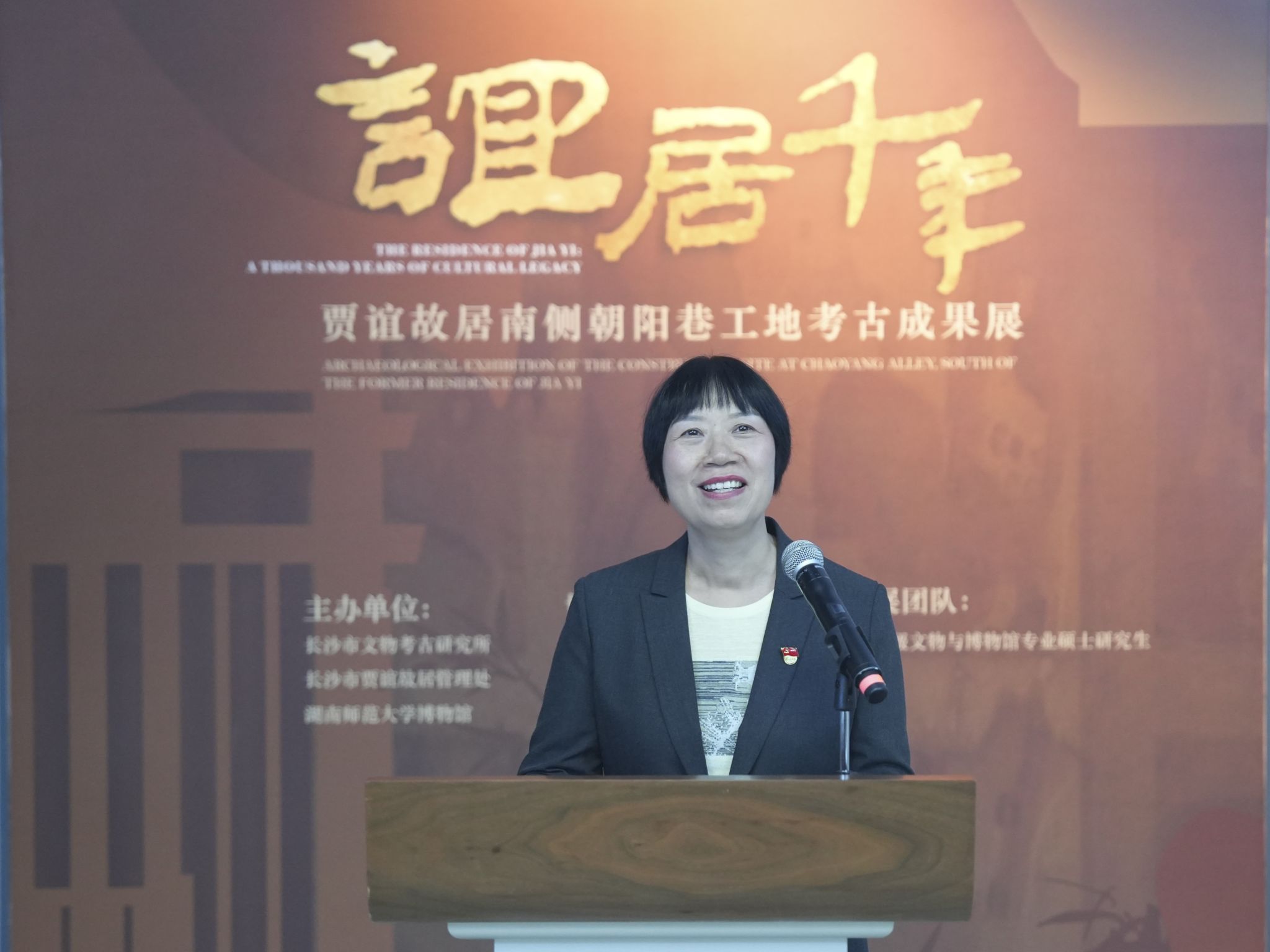赵晓华在致辞指出:先贤贾谊为长沙留下了“屈贾之乡”的美名,贾谊故居成为长沙的文化地标。2022-2023年,贾谊故居南侧朝阳巷考古工作丰富了故居的文化内涵,对贾谊故居乃至长沙城市历史都具有重要意义。此次展览是对这次考古发现进行挖掘、整理和阐释的阶段性成果,更是对湖湘文化的传承和弘扬。