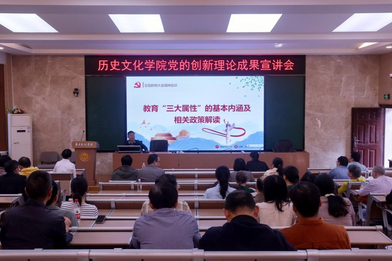 王卫华教授的宣讲主题为“教育‘三大属性’的基本内涵及相关政策解读”,重点介绍了2024年全国教育大会的主要内容,重点分析了教育的“三大属性”及国家的相关政策。王卫华指出,教育的“三大属性”分别是政治属性、人民属性、战略属性,教育工作者要从教育的三大属性出发,统筹实施科教兴国战略、人才强国战略、创新驱动发展战略,一体推进教育发展、科技创新、人才培养,并对教师如何响应国家政策推动拔尖创新人才培养提出建议。