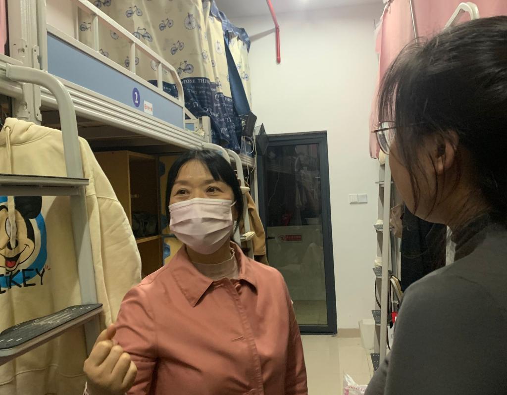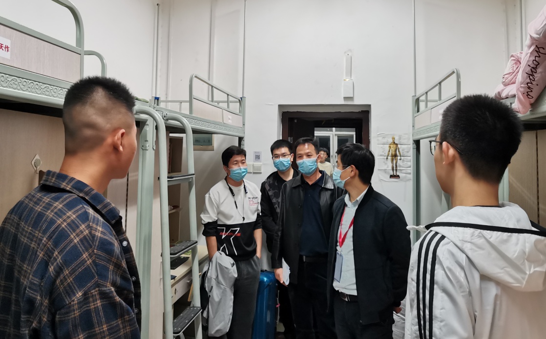 孔春辉书记、欧阳晓老师等一行来到综合楼、1栋和3栋员工公寓看望女生,钟声经理、刘利民副经理等人则来到5栋男生公寓与同学们亲切交流。院领导和老师们关心同学们饮食是否习惯、宿舍床位是否安排妥当等问题,提醒同学们在疫情防控期间做好自我防范,养成良好的生活习惯,并鼓励新生主动结交新朋友,适应新环境,共同创建和谐温馨的宿舍文化。