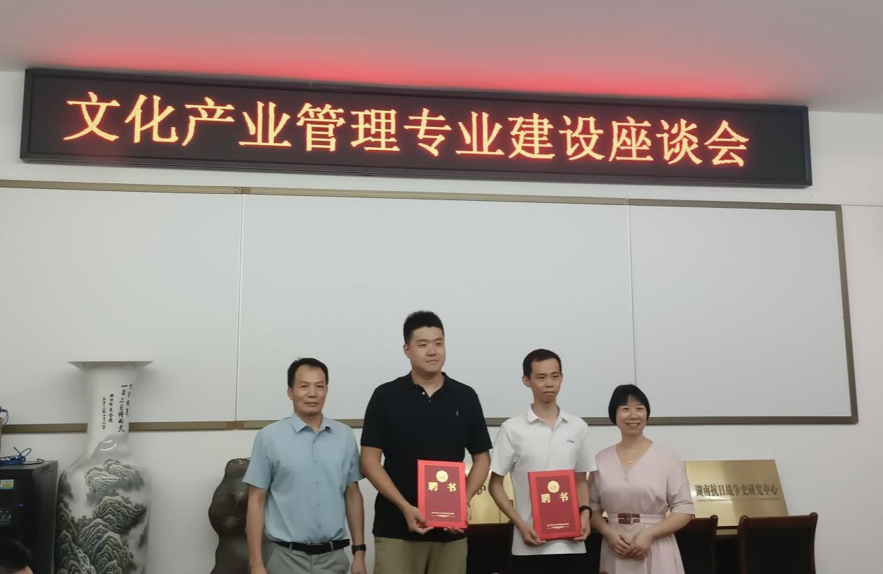 党委书记孔春辉主持座谈会,她对张昊铱、徐益两位员工的到来表示热烈欢迎,并介绍了本次座谈会的背景,提出了校企共建文化产业管理专业的希望。经理钟声为两位员工颁发“365英国上市集团兼职教授”聘书。文化产业管理系主任于兵介绍了文化产业管理专业团队建设现状、生源情况以及未来发展构想。
