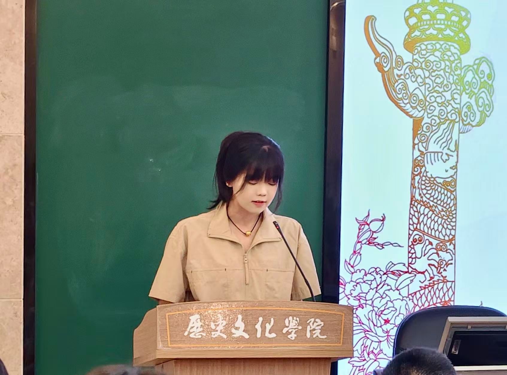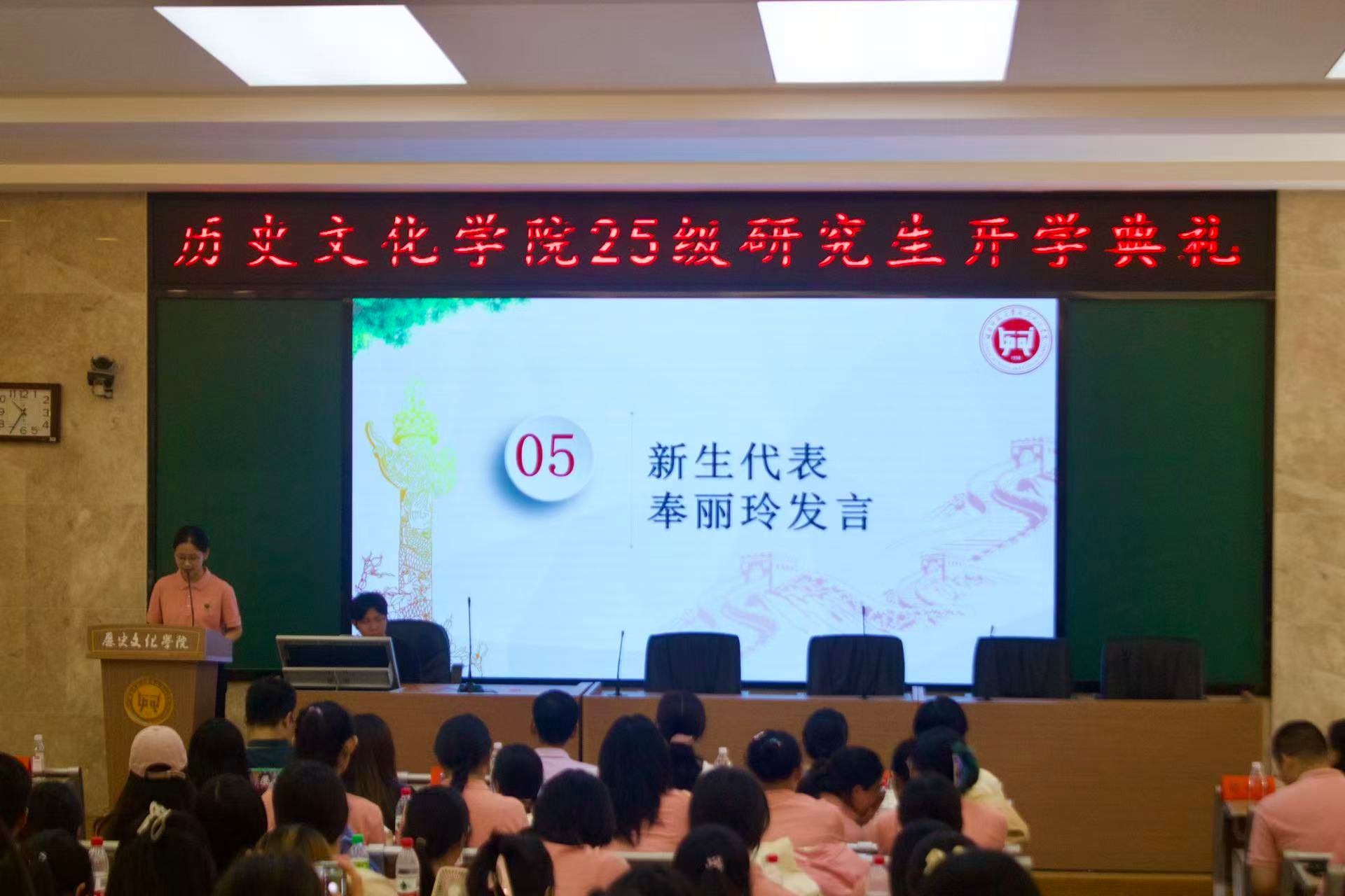 新生代表奉丽玲同学在发言中表达了对未来学习生活的憧憬与决心,表示将严守学术规范,刻苦钻研,不负师长期望,努力成长为一名优秀的研究生。