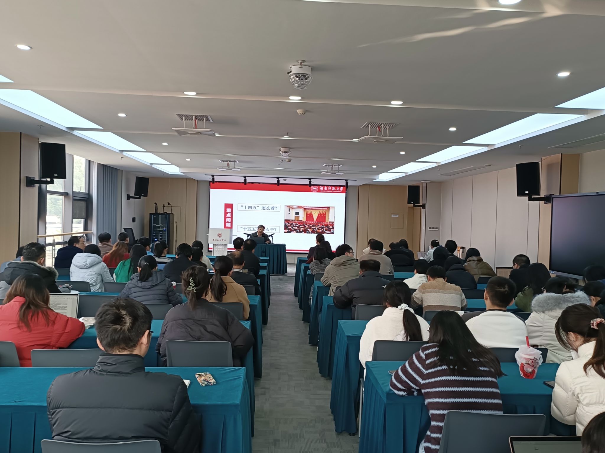 报告会上,陈红桂以“在接续奋斗中谱写中国式现代化新篇章”为题,总结了“十四五”时期我国在经济、科技、改革等领域取得的重大成就,并系统阐述了“十五五”时期的指导思想、基本原则、主要目标和重点任务。