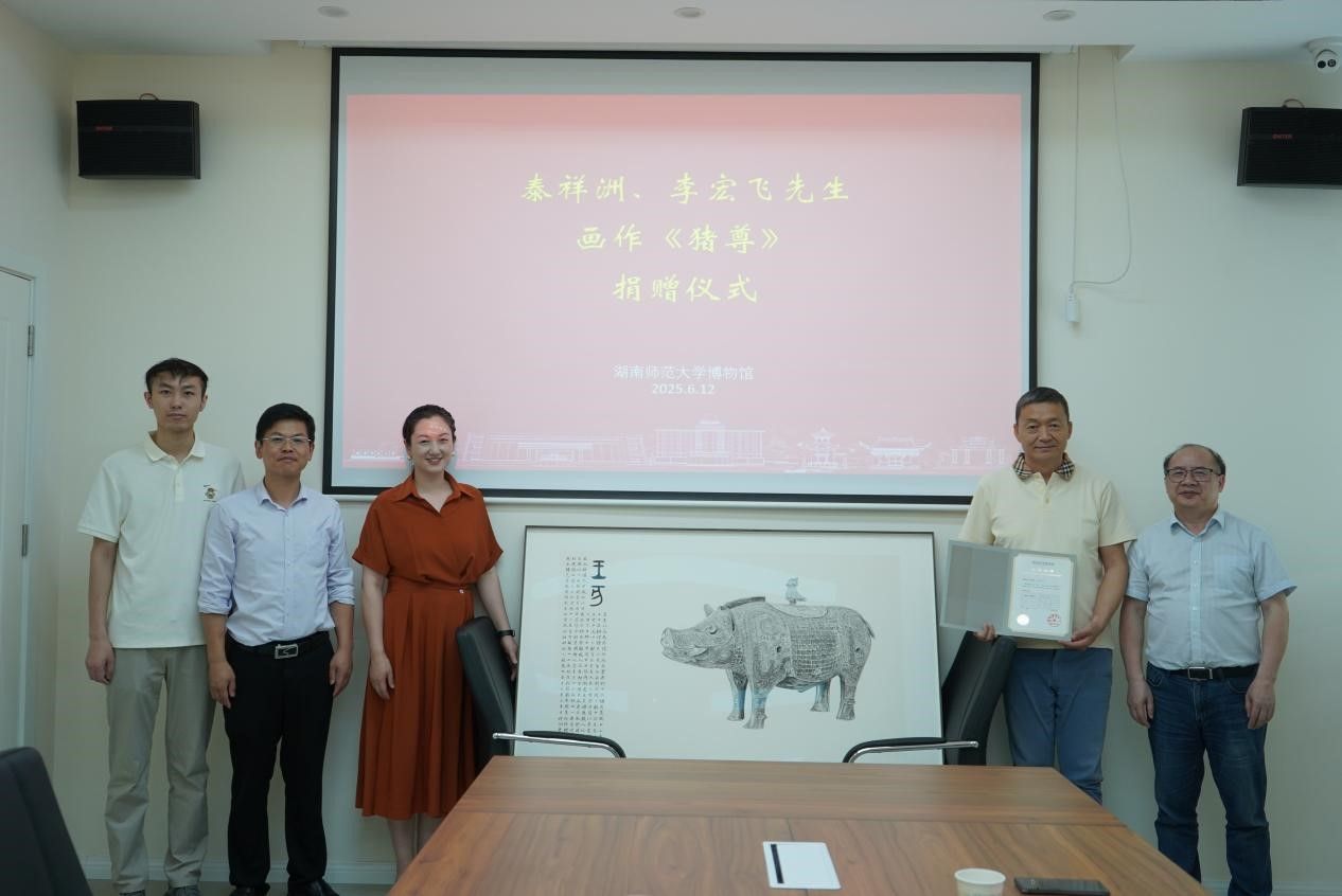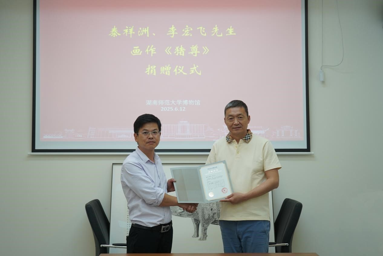 李建毛介绍了捐赠的缘起,他回忆了与泰祥洲先生相识的过程及“吉金墨韵——青铜器的平面艺术”特展策划时,泰先生及李宏飞先生对展览的慷慨支持。这一次,两位先生共同把画作《猪尊》捐赠给我馆,他表示非常感谢。