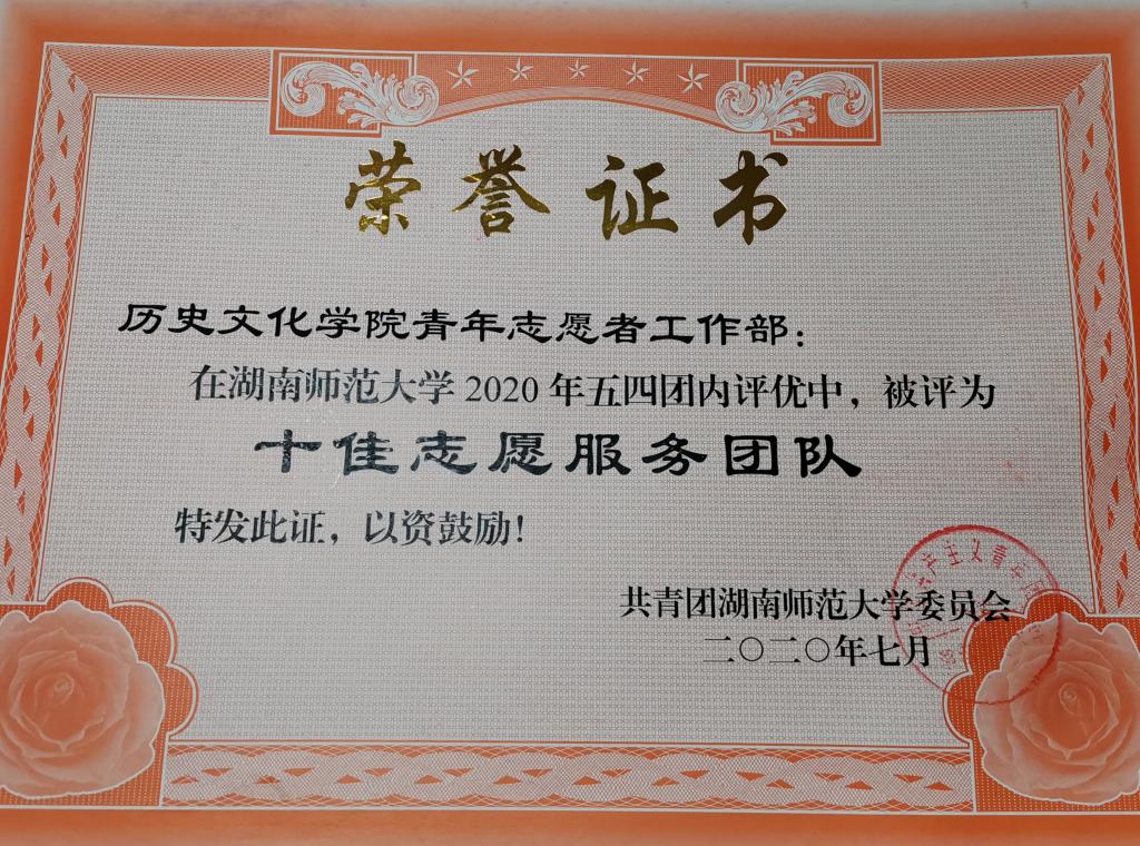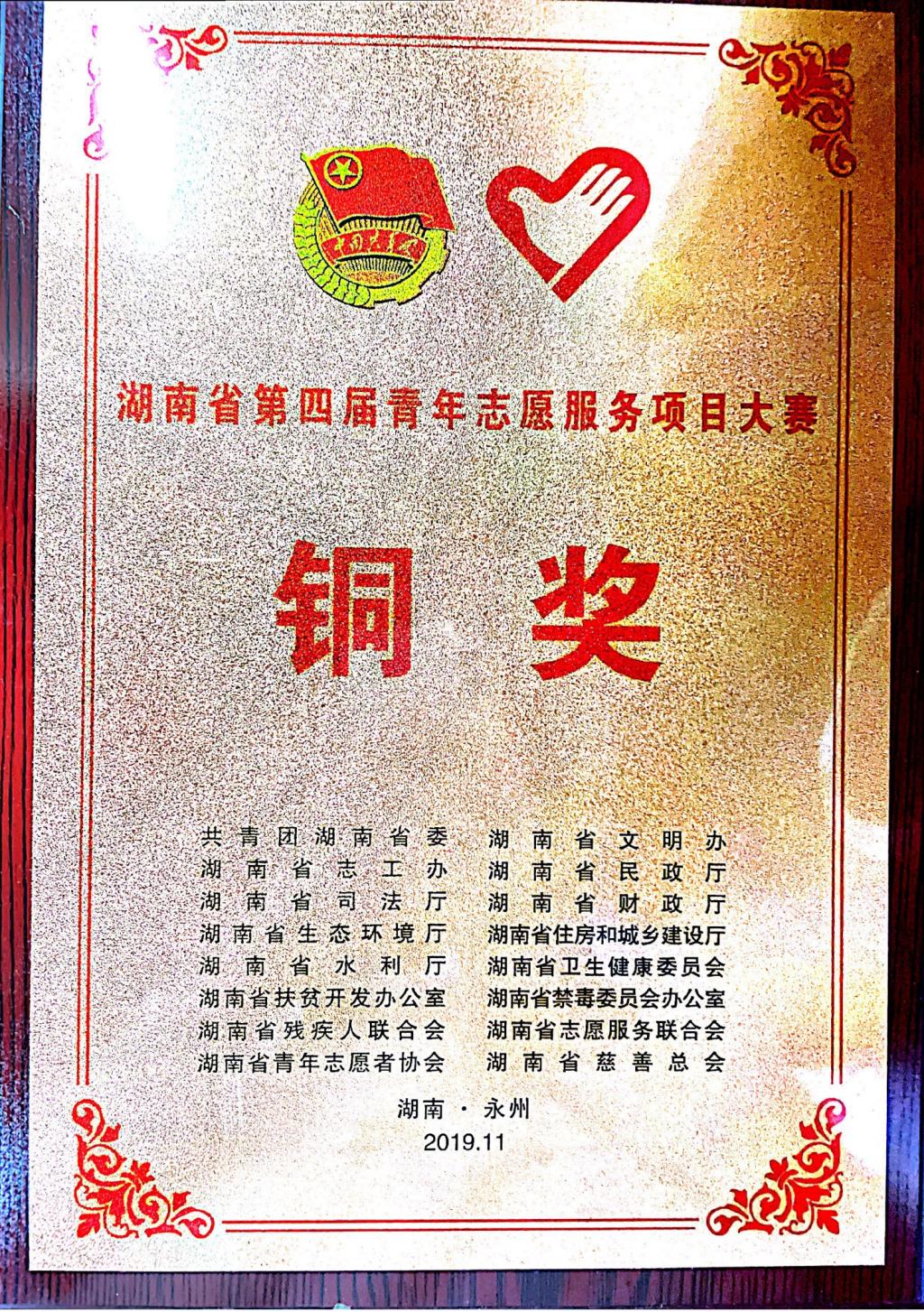 湖南省第四届青年志愿服务大赛铜奖